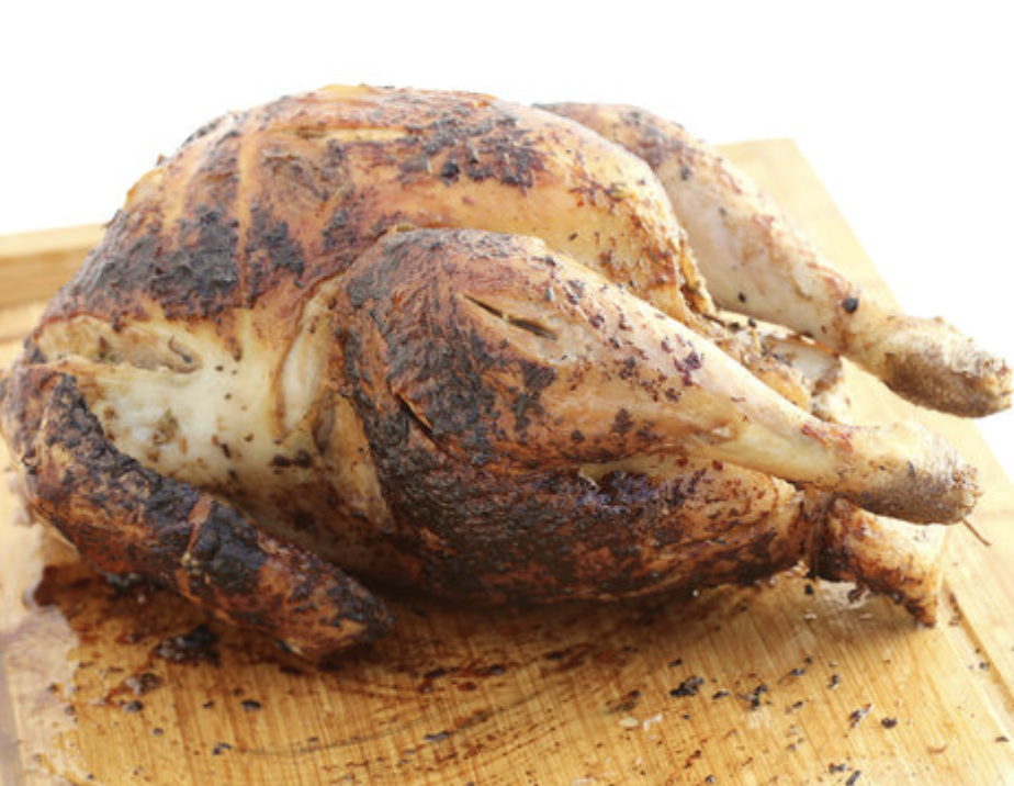 • Once chicken is cooked, let rest for 3 minutes until slicing, topped with the sauce. Served paired with grilled peppers and onions as shown.